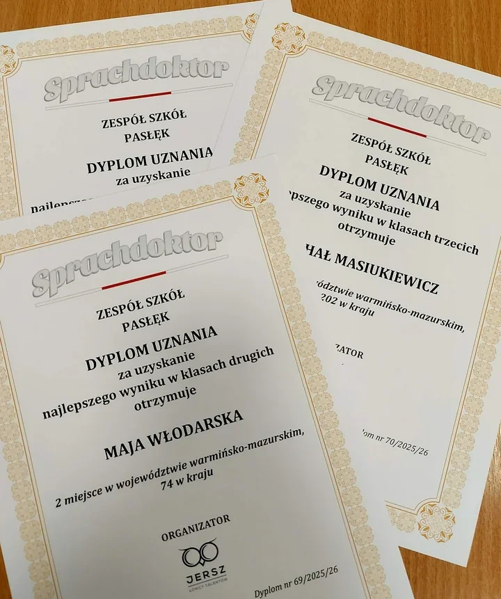 W konkursie, który bezlitośnie sprawdza gramatykę, słownictwo i czytanie ze zrozumieniem, pasłęccy uczniowie pokazali, że niemiecki nie jest dla nich barierą. W XXV edycji ogólnopolskiego „Sprachdoktora” blisko 2000 uczestników z całej Polski mierzyło się z testem 12 marca, a Zespół Szkół w Pasłęku zebrał wyniki, których nie da się przeoczyć. Jedenaścioro uczniów tej szkoły znalazło się w pierwszej dziesiątce na poziomie województwa.
