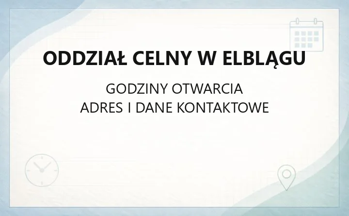 - Oddział Celny w Elblągu: poniedziałek–piątek, 7:30–15:30.
